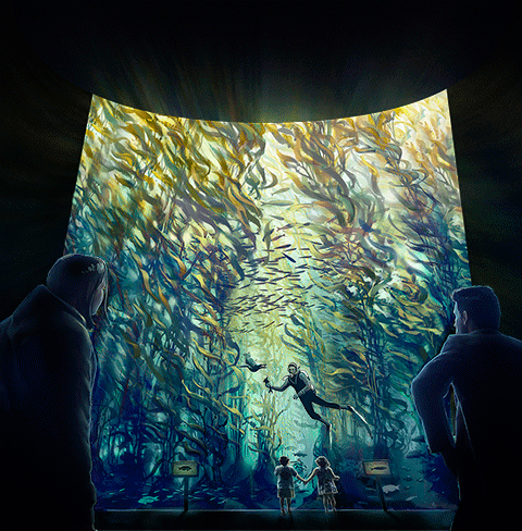 The "Kelp Forest" exhibit features an 8m deep, million-litre aquarium containing a forest of living giant kelp which is the world’s fastest growing plant. The exhibit is open to the sky and you can see it through the tallest acrylic window in the Southern Hemisphere.