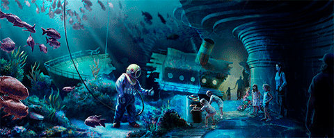 In the Abyss, you’ll be able to walk through the skeleton of a whale that has died and fallen to the bottom of the sea where it becomes both home and food for a very unique group of marine animals.